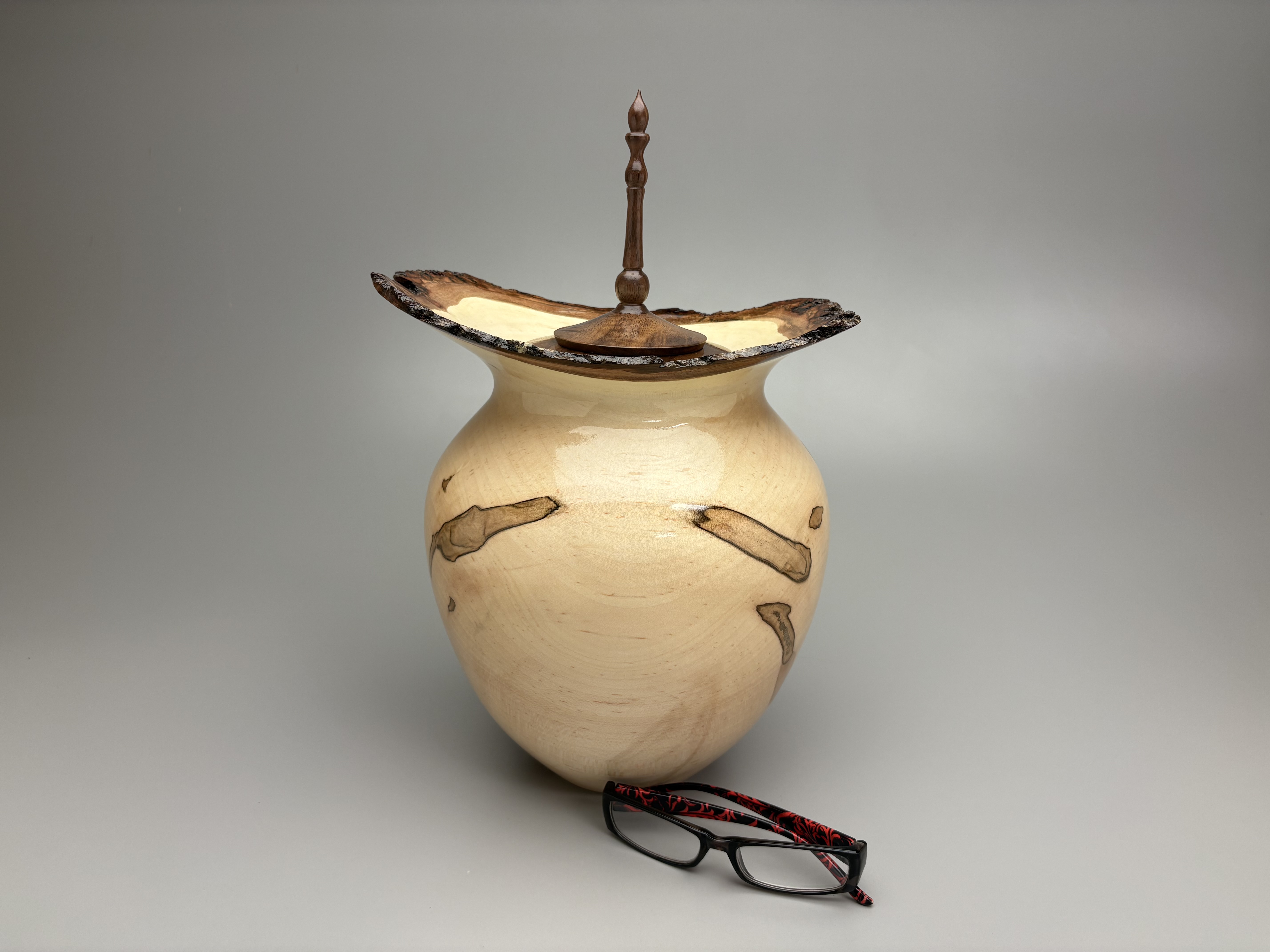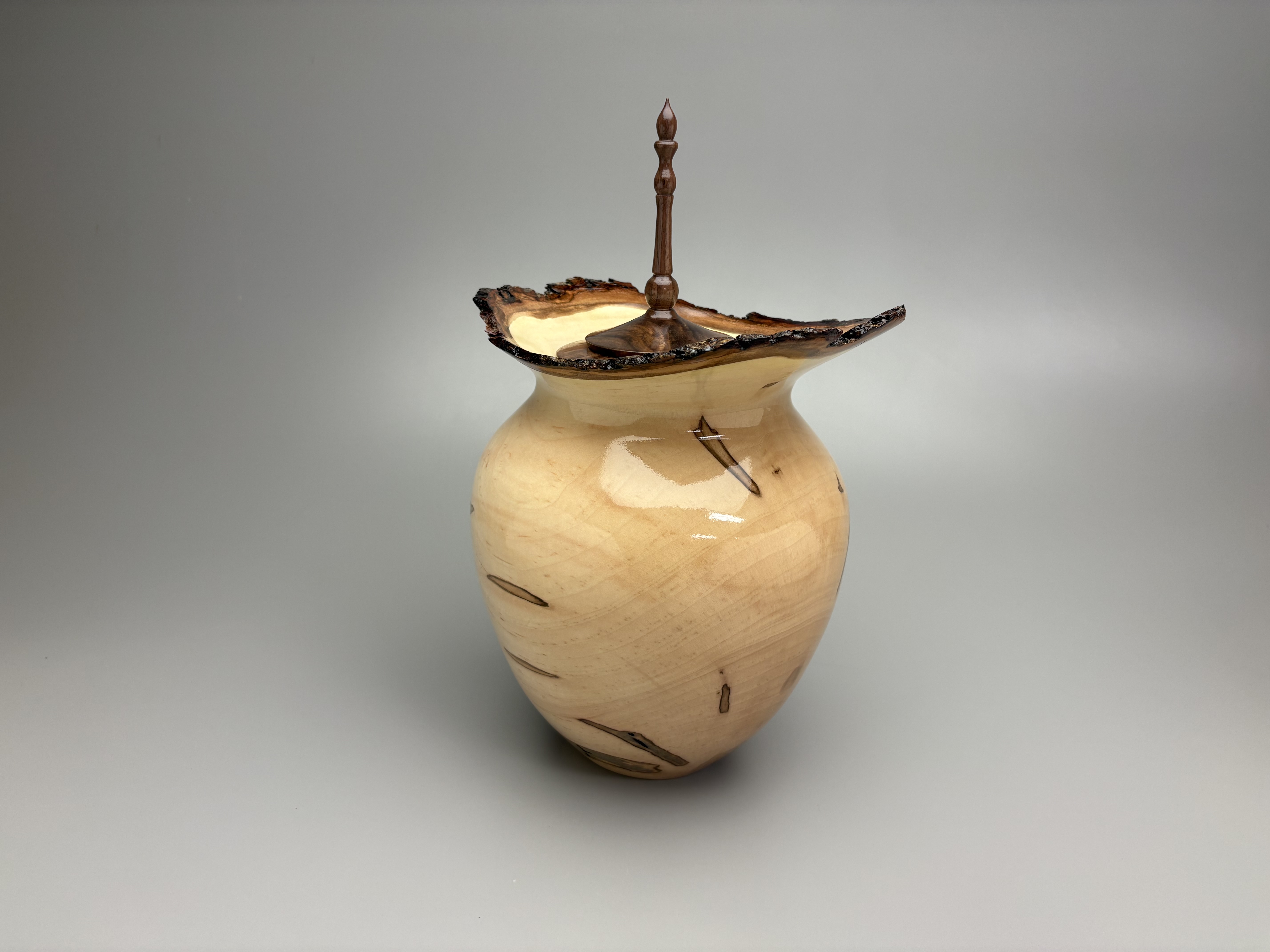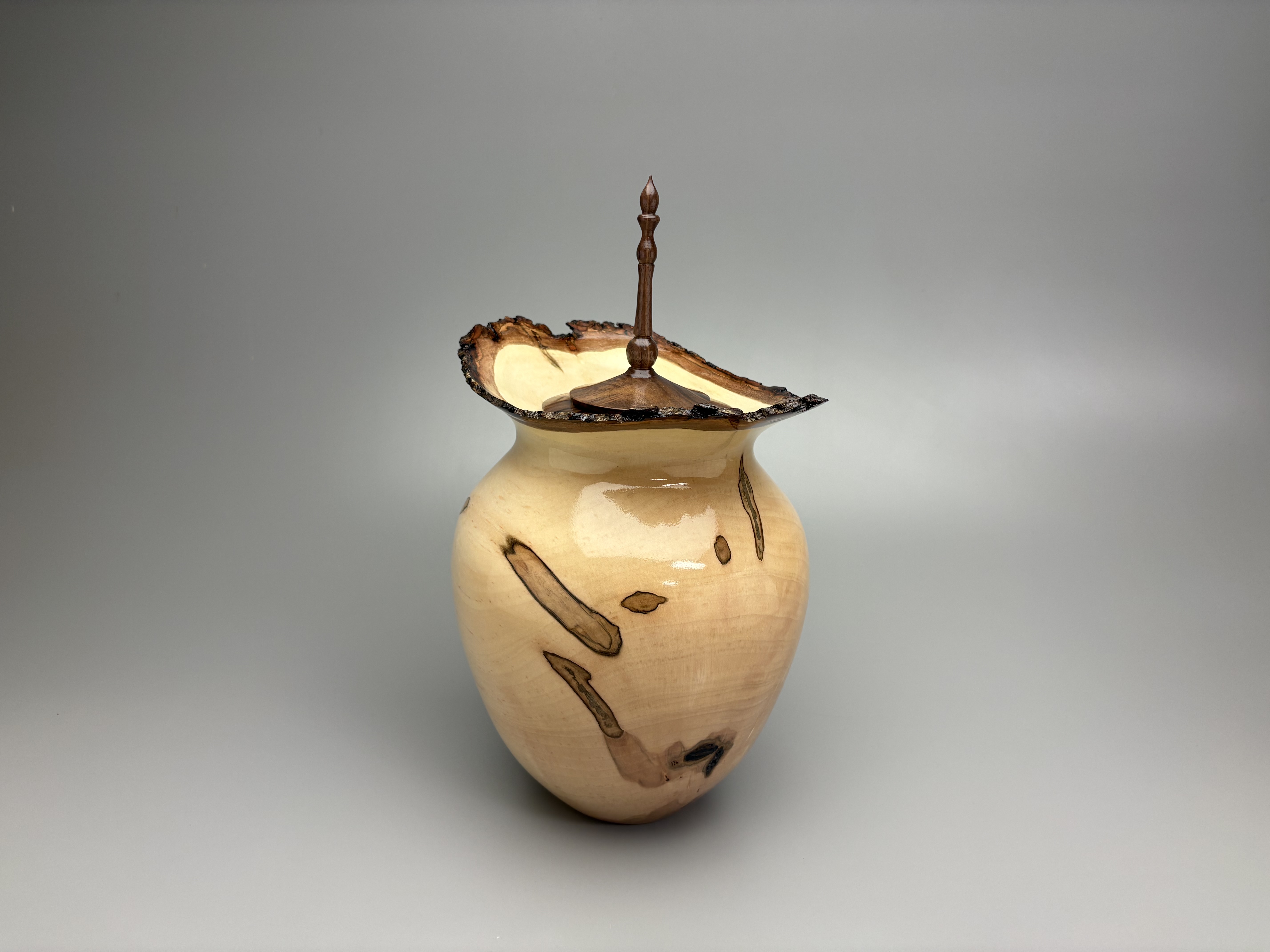 Number:4141260 Style:Fine Art Wood:Ambrosia Maple Top:Walnut  -  Wood threaded top  Capacity: 260 cu. in.  Height: 14.0"   Width: 9.25"